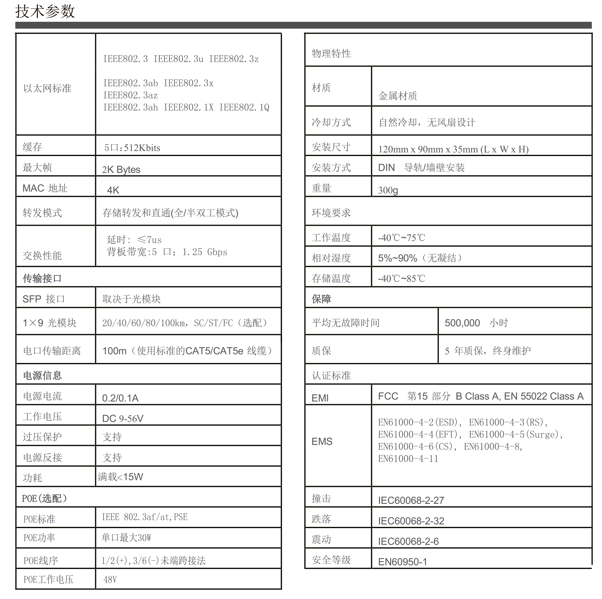 Supports 100M SC/FC/ST/LCc optical fiber ports, supports single/dual fiber transmission; supports IEEE802.3az energy-saving technology: power input polarity protection design, no need to worry about wrong operation