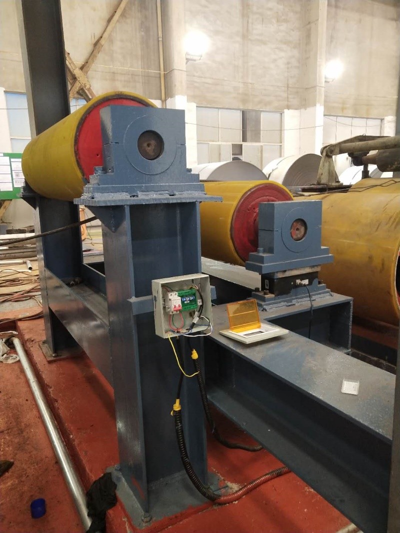 The UPB series sensor is mounted on the bearing block by a desktop shaft tension roller. The bearing block and the sensor are connected by a transition plate.